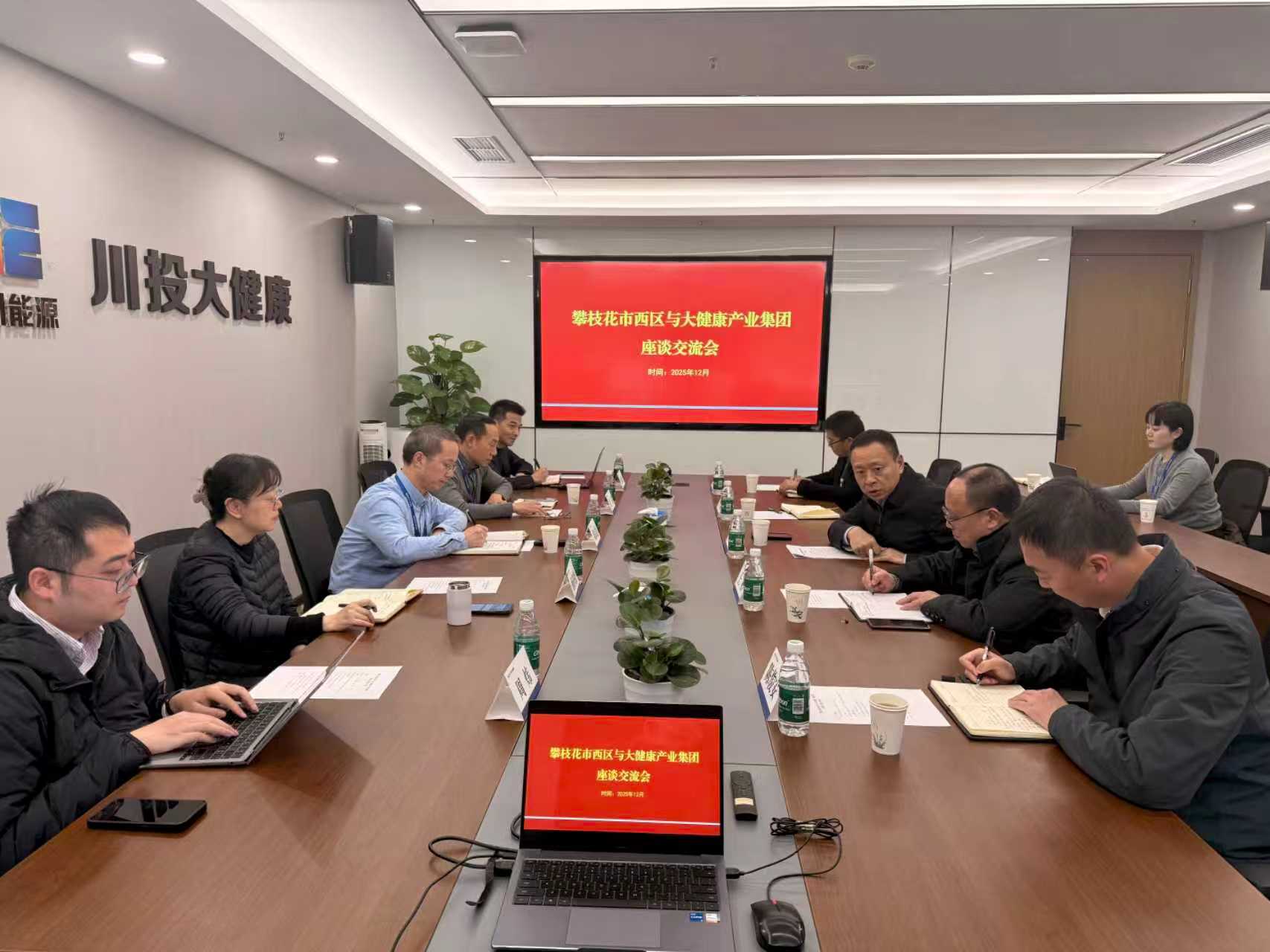 12月24日,攀枝花市西区区委书记胡昱冰带队到大健康产业集团调研交流,大健康产业集团党委副书记、总经理周家超主持会议。