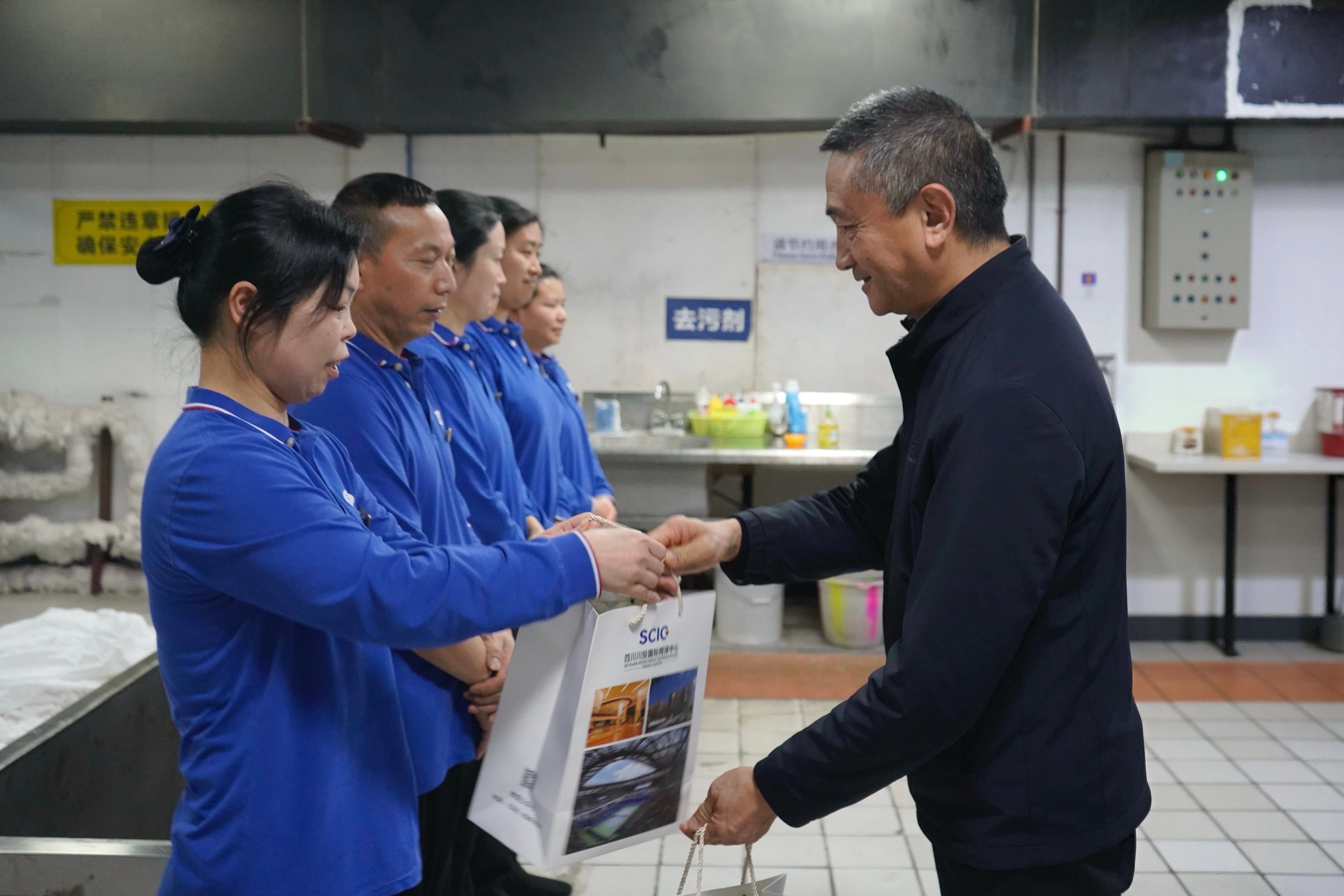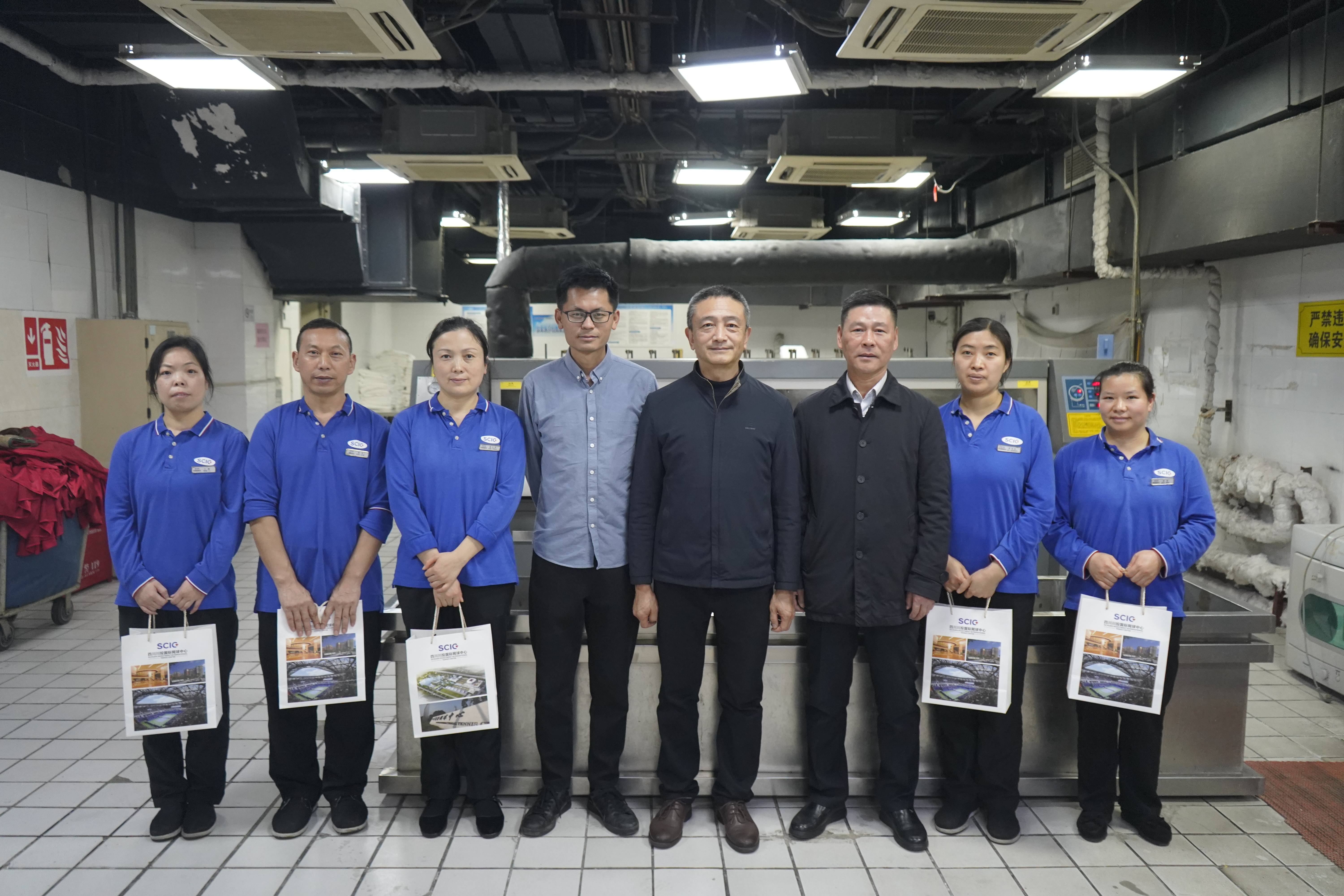 随后,王少甫来到川投国际酒店前厅部前台和房务部洗衣房,实地了解一线员工的工作环境与生活保障情况,并与大家亲切交谈。在前厅前台,他详细询问了节日排班安排、近期客源接待及服务保障情况,对大家过去一年在提升服务品质、展示企业形象方面作出的努力给予充分肯定,并表示前厅是酒店的“窗口”,希望大家继续保持热情专业的服务状态,为宾客营造温馨舒适的入住体验。来到洗衣房,他详细了解洗涤设备运行及安全生产落实情况,表示洗衣房作为酒店重要的后勤保障单元,运转的机械化设备较多,且职工长期身处高温环境工作比较辛苦,感谢大家坚守岗位、默默付出,同时叮嘱大家一定要注意安全、规范操作,确保酒店安全平稳运行。