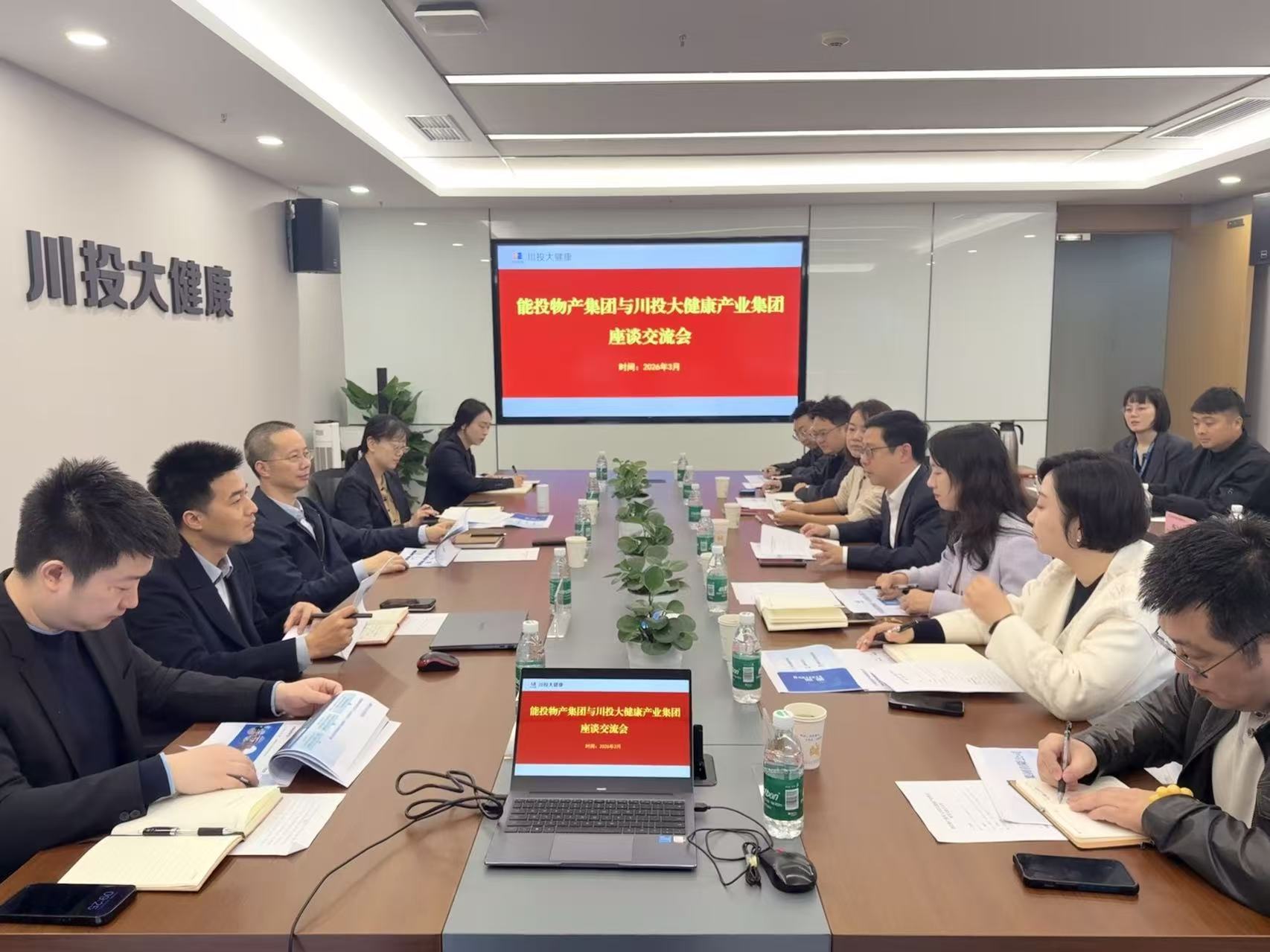 能投物产集团副总经理李倩,川投大健康产业集团副总经理杨轶舫,能投物产集团相关子公司、川投大健康产业集团相关部门人员参加座谈。