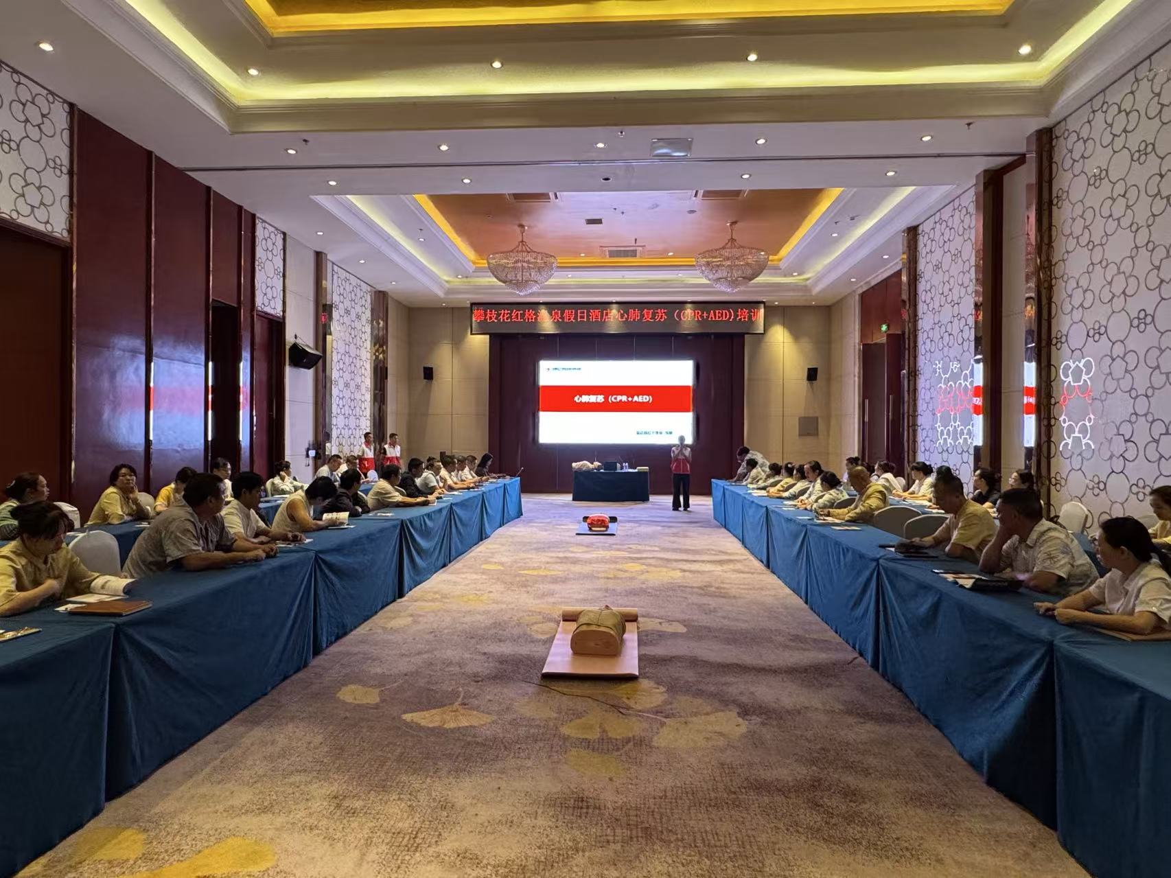 10月17日,红格温泉假日酒店邀攀枝花市盐边县红十字会在酒店成都厅开展心肺复苏(CPR+AED)专项培训。本次培训以“理论精讲+实操演练”模式,旨在提升员工应对宾客突发健康事件应急处置能力,强化对客安全保障,筑牢酒店运营安全防线。