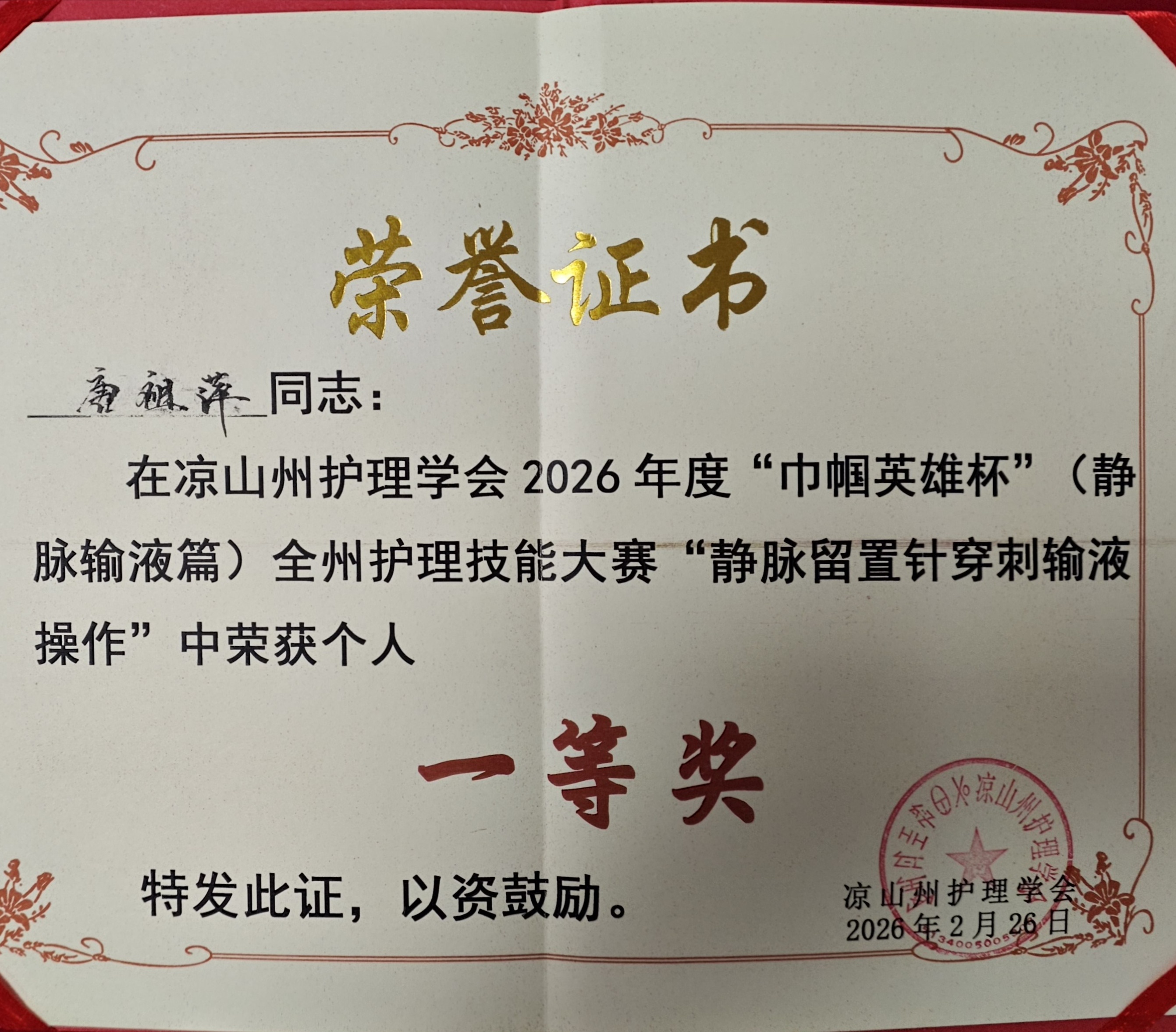 近日,由凉山州护理学会主办的“巾帼英雄杯”全州护理技能大赛(静脉输液篇)在西昌圆满落幕,川投西昌医院护理团队凭借扎实的专业功底、娴熟的操作技能和良好的职业素养,在众多参赛队伍中脱颖而出,斩获多项荣誉,为医院赢得了殊荣!其中,儿科唐祖萍凭借精湛的操作技艺和出色的现场发挥,荣获个人一等奖;肿瘤科范晓迪表现优异,荣获个人二等奖;医院护理团队整体协作默契、发挥稳定,荣获团体二等奖,大家用实力交出了一份亮眼的答卷。