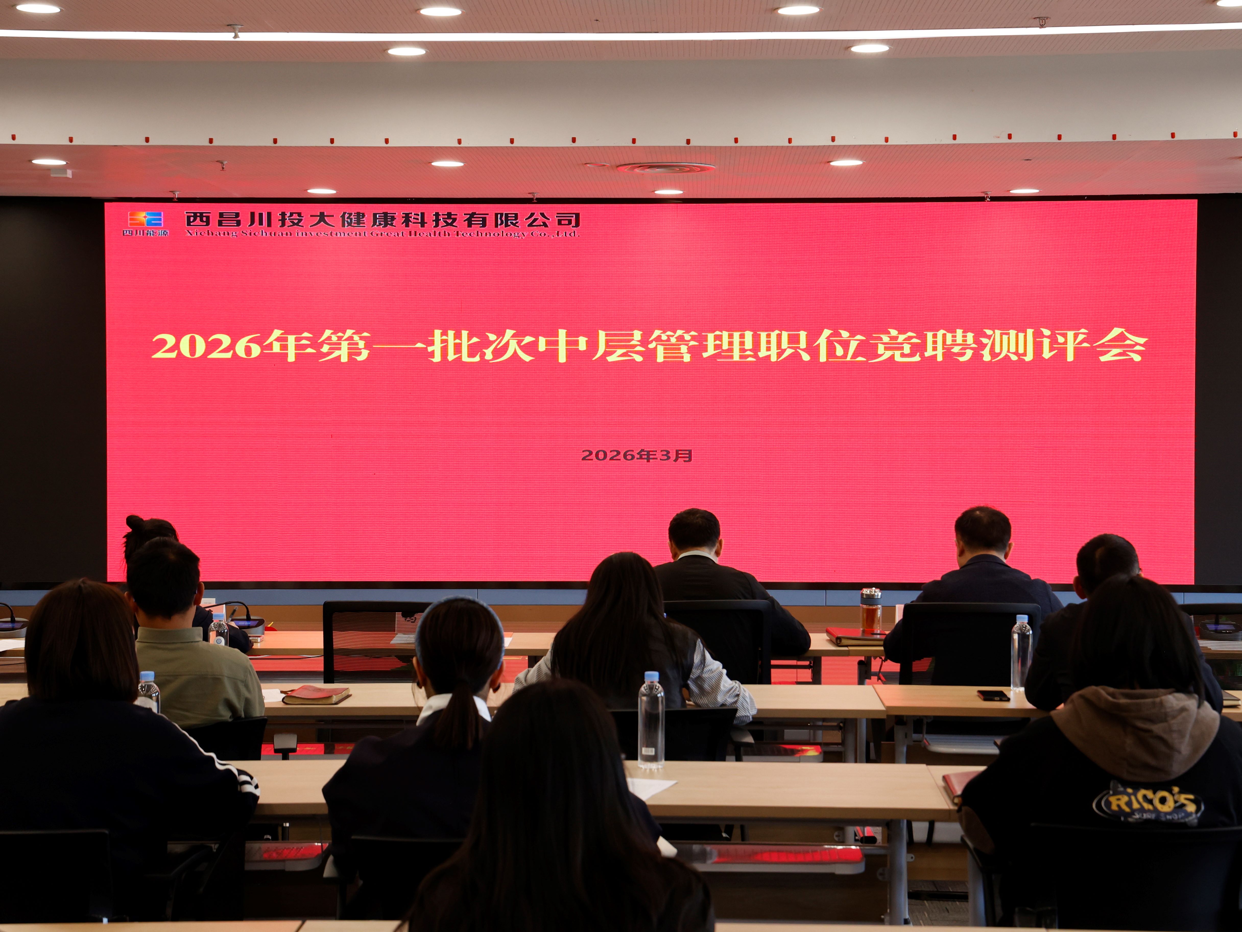 3月19日,西昌川投大健康科技有限公司召开2026年第一批次中层管理职位竞聘测评会。西昌大健康公司党委书记、董事长姜涛主持会议,西昌大健康公司、川投西昌医院领导班子成员、竞聘人员及员工代表参加测评会。